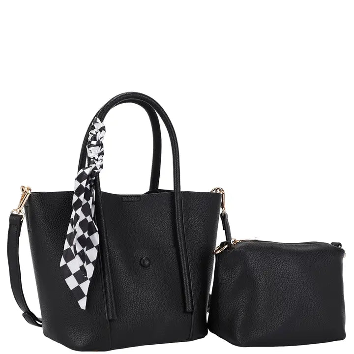 2IN1 Textured Handle Satchel Bag W Pouch Set