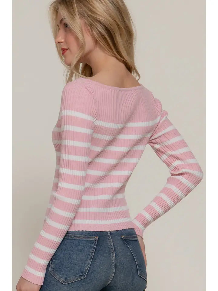 JUNIOR FITLONG SLEEVE BOAT NECK STRIPE SWEATER