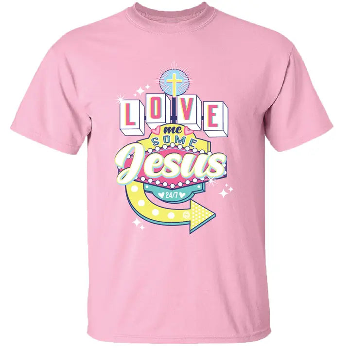 Show your love for Jesus with this 100% cotton t-shirt! The relaxed fit ensures comfort while the unique "Love Me Some Jesus" phrase adds a playful touch. Perfect for spreading joy and positivity. Also available in youth sizes.