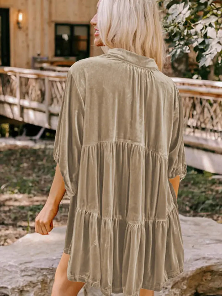 Women's 3/4 Sleeve Tunic Babydoll Velvet Shirt